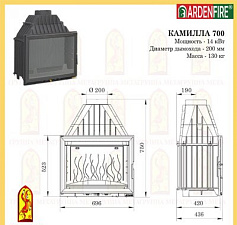 Топка снабжена большим плоским стеклом и легким и бесшумным подъемным механизмом, с уравновешивающими противовесами и тросовой системой (или цепной передачей), выдерживающим нагрузку в несколько сотен килограммов, дверца топки открывается вверх и на себя, для удобной чистки стекла.