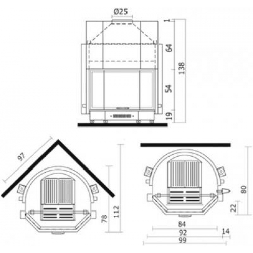 Топка с водяным отоплением из толстой стали, способная производить горячую воду, поступающую в контур системы отопления и на радиаторы, а также производить горячую техническую воду. Дверца с подъемом, эркер. Камин может устанавливаться как пристенный или как фронтальный. В наличии версия для инсталяции с закрытым расширительным баком, спиралью и встроенным клапаном безопасности.