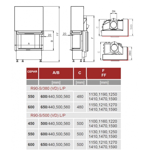 Каминная топка Kobok Corner 950 VD R90-S/500 L/P